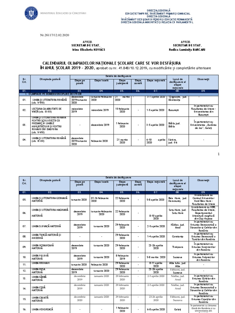 41848/10.12.2019 și a calendarul concursurilor naționale finanțate de către mec, aprobat cu nr. Calendar olimpiade școlare noutăți citește mai mult despre ordinul ministrului educației naționale nr.