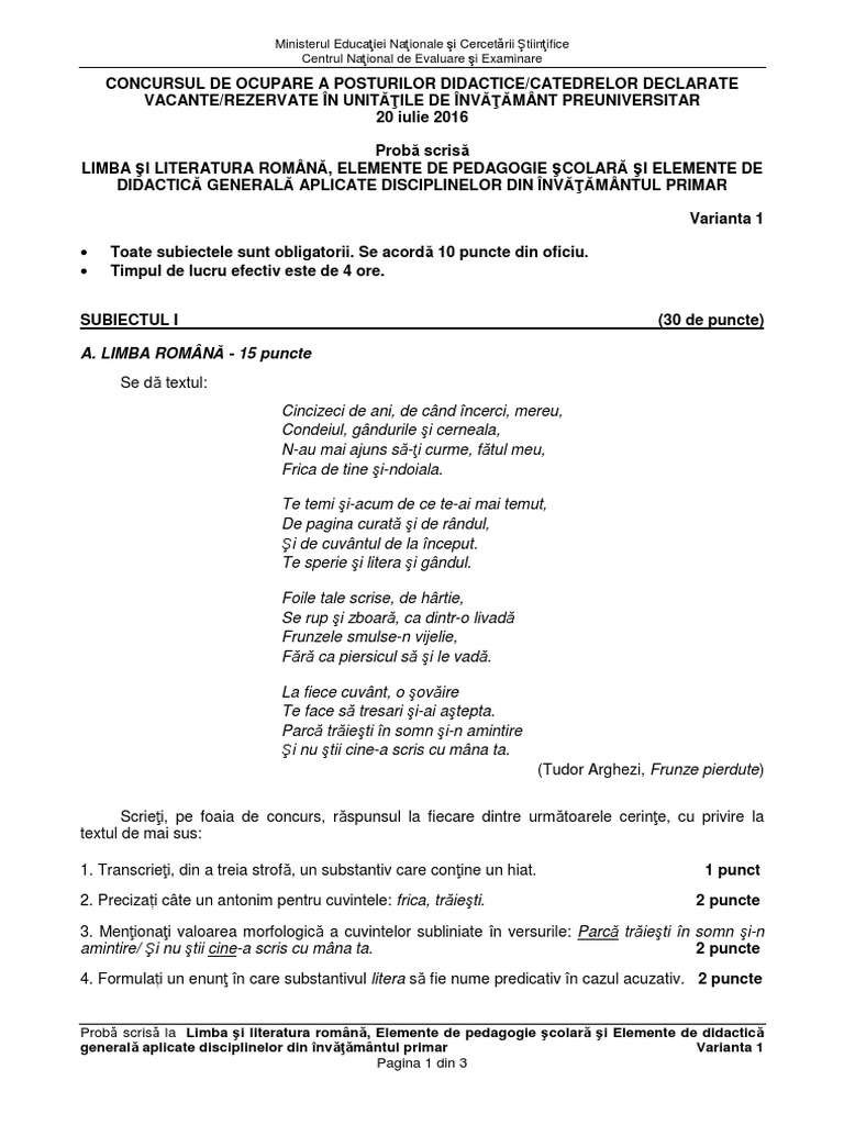 Subiecte Titularizare Educatori 2016